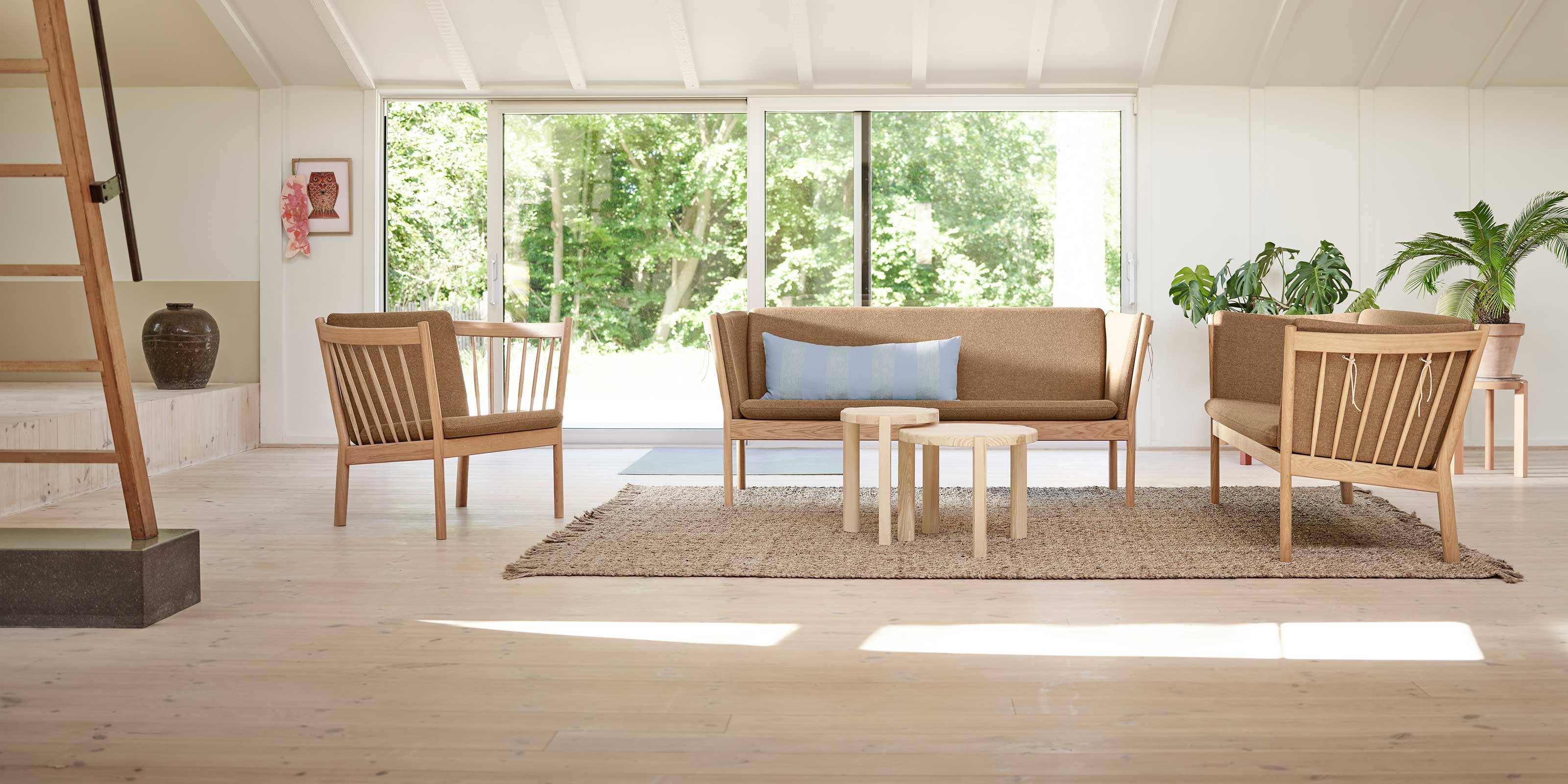 Loungestolen J147 er i familie med de andre møbler i Erik Ole Jørgensens berømte serie fra 1978, men har mere enkle armlæn uden tremmer. Det er en meget komfortabel lænestol, der indbyder til fordybelse, læsning og anden kvalitetstid. Den lægger sig i den fineste danske møbeltradition – uden at råbe op. Erik Ole Jørgensens serie af tremmemøbler er fra 1978 og har tydelige referencer til de andre store designere, der har skabt fundamentet hos FDB Møbler. Erik Ole Jørgensen havde baggrund som både møbelpolstrer og møbelarkitekt, og måske er det derfor, at samspillet mellem hynder og møbel er specielt vellykket her.4.0