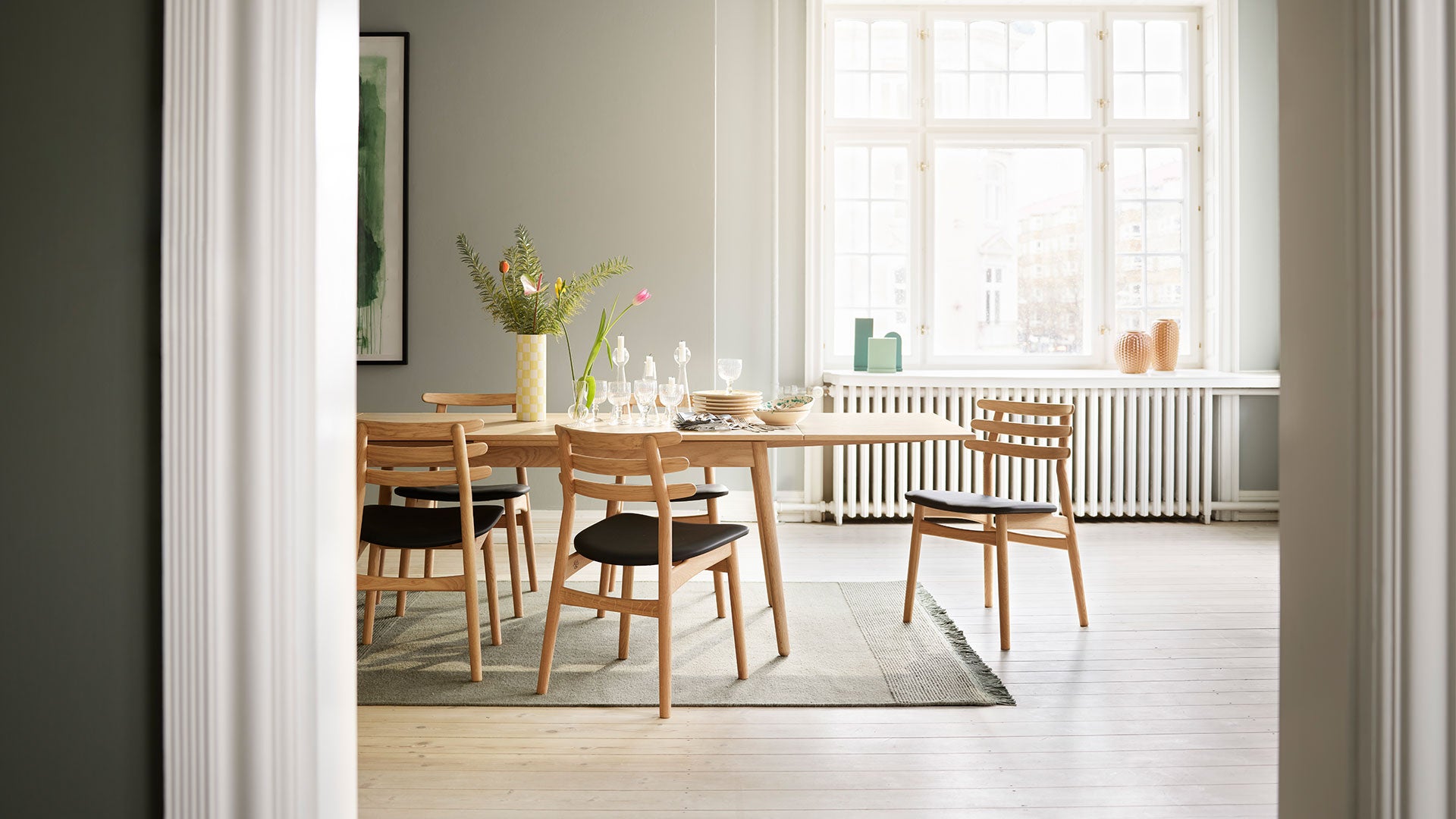 Der Esstisch der Bjørk-Serie ist sehr ausgewogen, mit einer Balance zwischen Tradition und Innovation, die sich wie ein roter Faden durch die Geschichte von FDB Møbler zieht. Der Tisch ist aus massiver, FSC®-zertifizierter Eiche gefertigt. Kleinere Astlöcher und die natürliche Struktur des Holzes sind charakteristische Merkmale dieses natürlichen Materials.