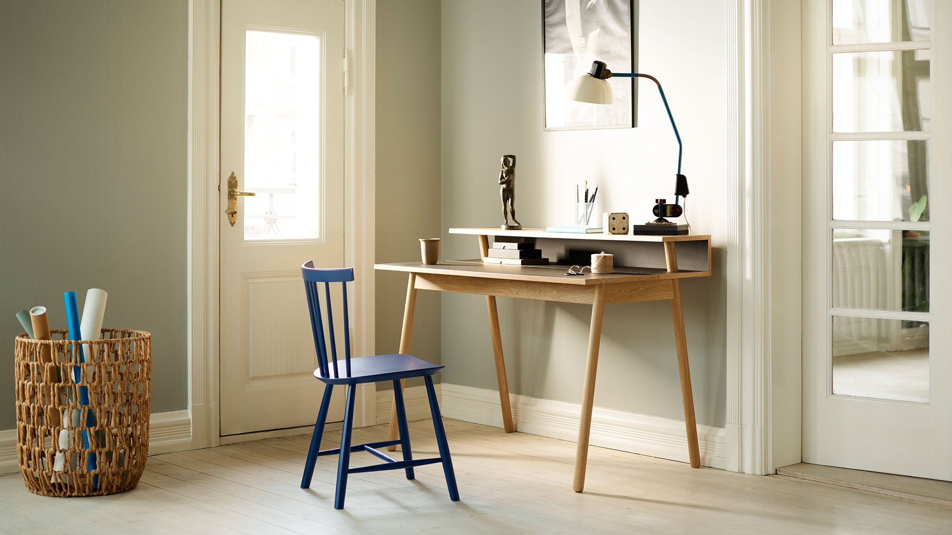 Der stilvolle und funktionale Nørrebro-Schreibtisch wurde von Isabel Ahm entworfen. Dank des schlichten, auf das Wesentliche reduzierten Designs ist Nørrebro ein Tisch, der in jedes Zuhause passt – auch in kleine Wohnungen.