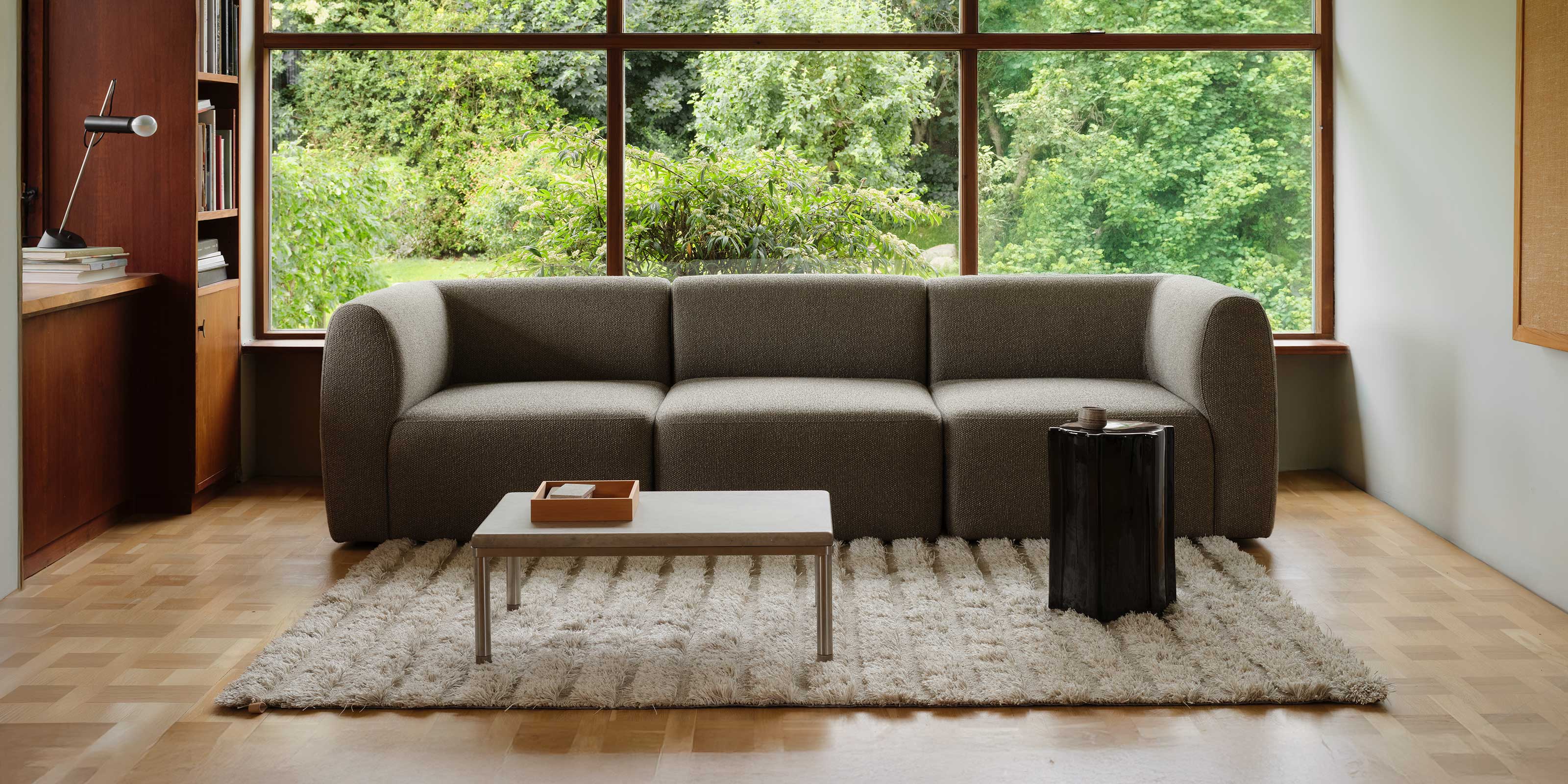 Mit Korinth wollten wir ein Möbelstück schaffen, das sowohl den Körper als auch den Raum um ihn herum umschließt. Das Sofa soll einladend sein, aber dennoch durch klare Details herausstehen – ein Sofa, das ein Statement setzt, ohne den Raum zu dominieren.“